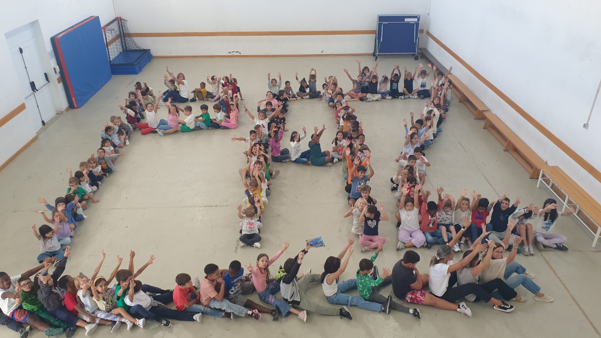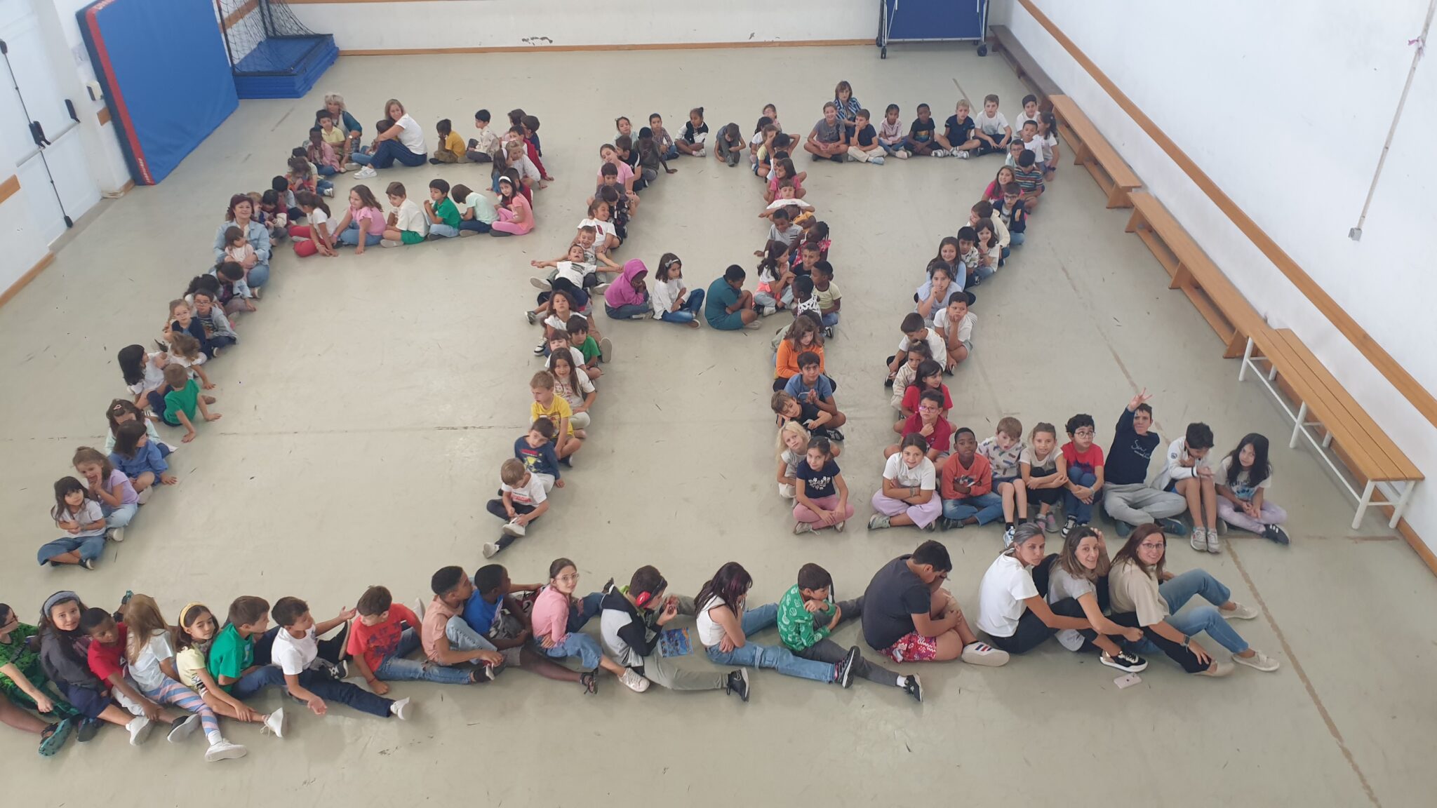 Cerca de 160 alunos e respetivos professores uniram-se para formar, com os próprios corpos, a palavra “PAZ”, numa celebração através da expressão corporal e do trabalho em equipa.