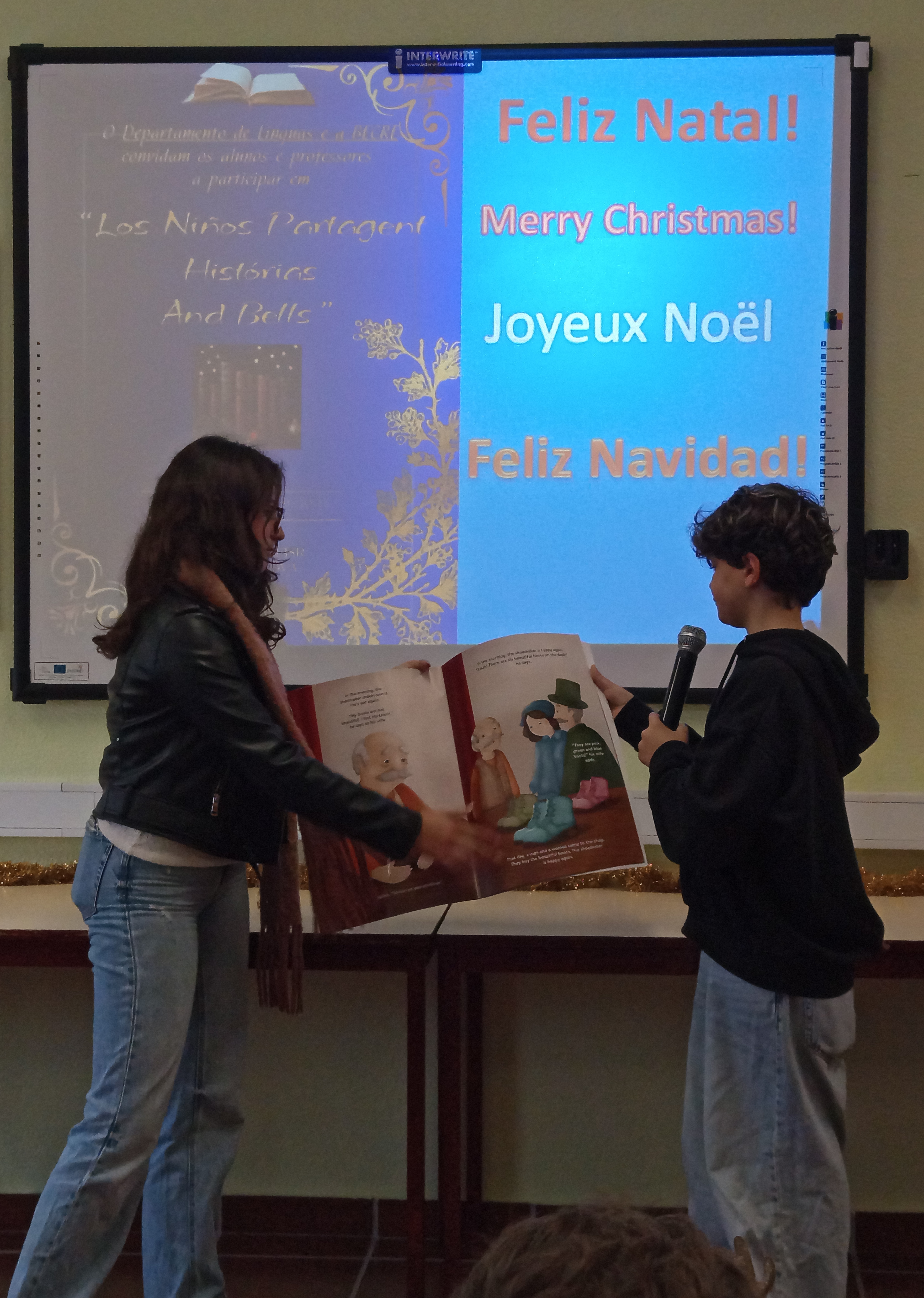 O Agrupamento de Escolas José Silvestre Ribeiro promoveu hoje, 15 de dezembro de 2025, uma celebração da literatura e da diversidade linguística sob o nome “Los Niños Partagent Histórias and Bells”.